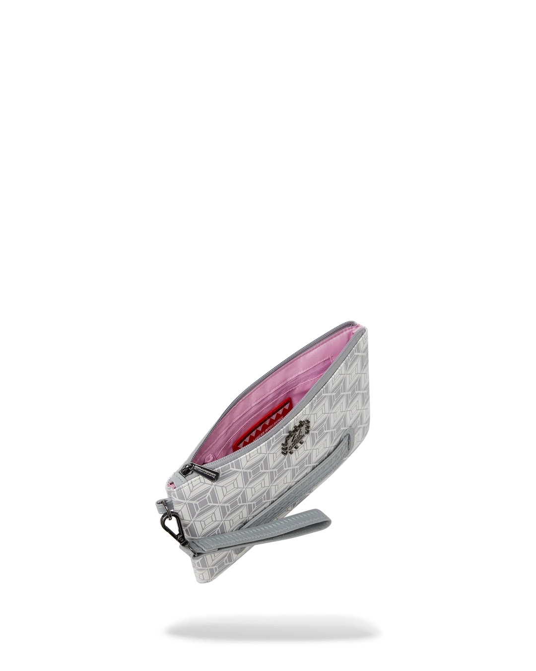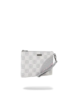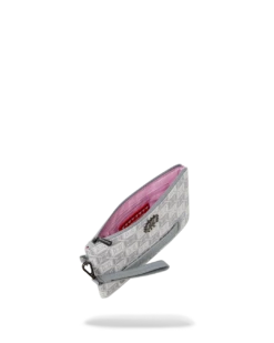 Pouch with removable wristlet strap, Handle on front panel, Zip Closure, secret stash pocket on side seam