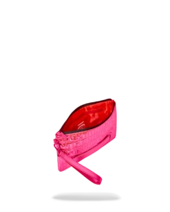 Pouch with removable wristlet strap, Handle on front panel, Zip Closure, secret stash pocket on side seam