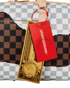 Dimensions: 8″ x 7.5″ x 13″• Metal zipper pocket• Back Zippers •Zippered sneaker pocket • gold zippers • Adjustable Straps for custom sizing •Metal Zippers with Metal Hardware • bag of Sprayground money